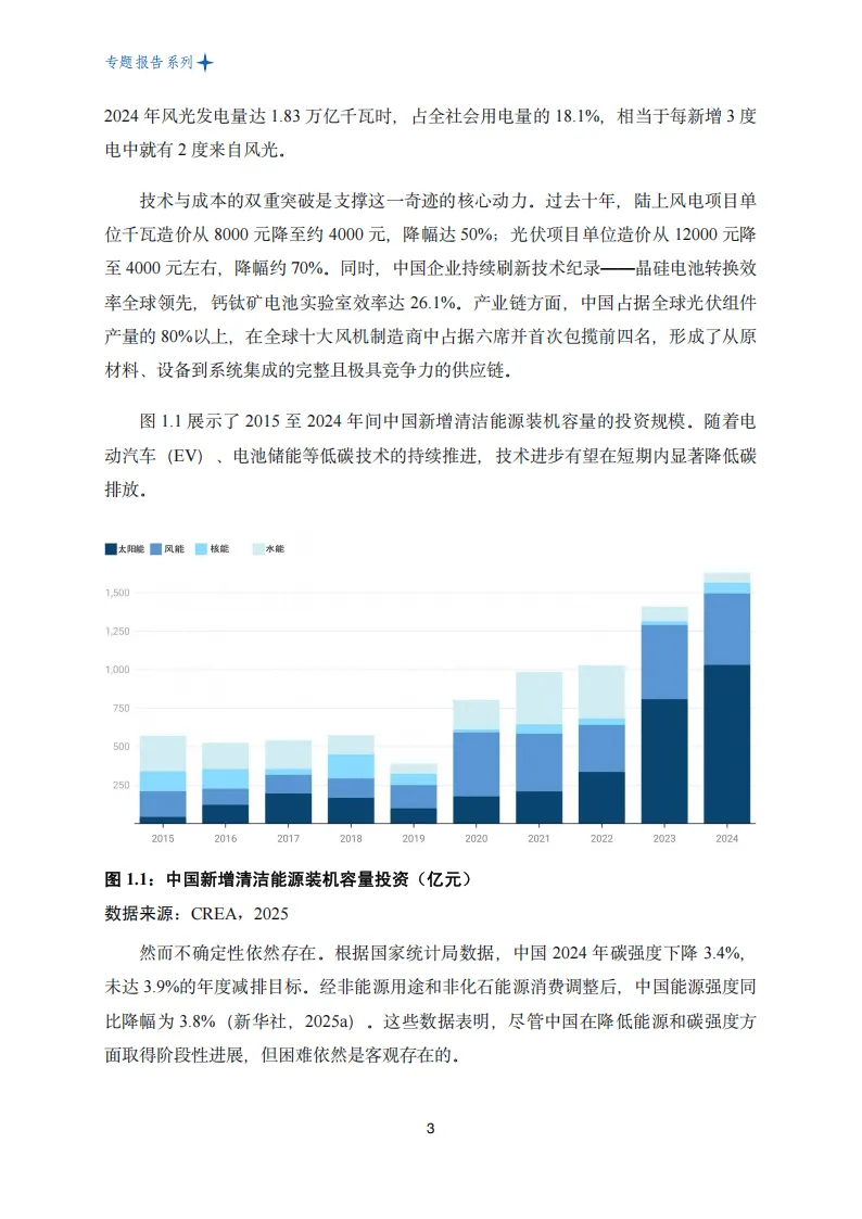 这份由北大汇丰商学院发布的报告聚焦中国电力系统碳中和发展,结合最新数据与LEAP模型,重新评估了供电行业实现“双碳”目标的可行性,并探讨提前达成目标的潜在路径。报告指出,全球气候治理形势趋严与中国可再生能源超预期发展,成为重新审视碳中和实现潜力的重要背景。