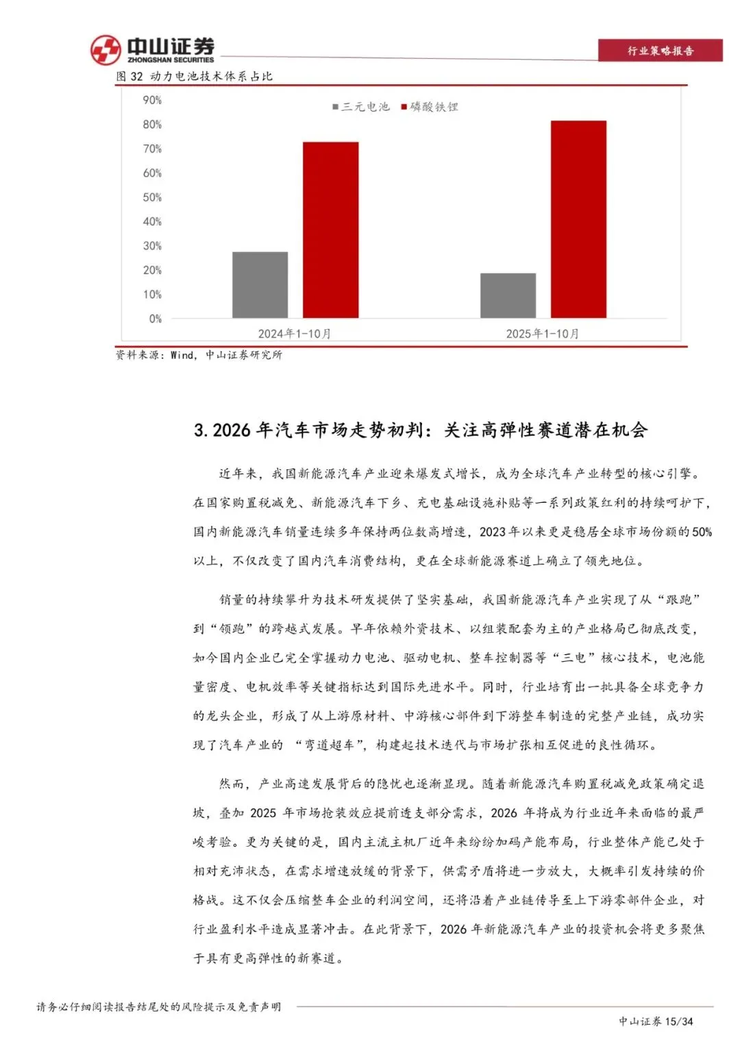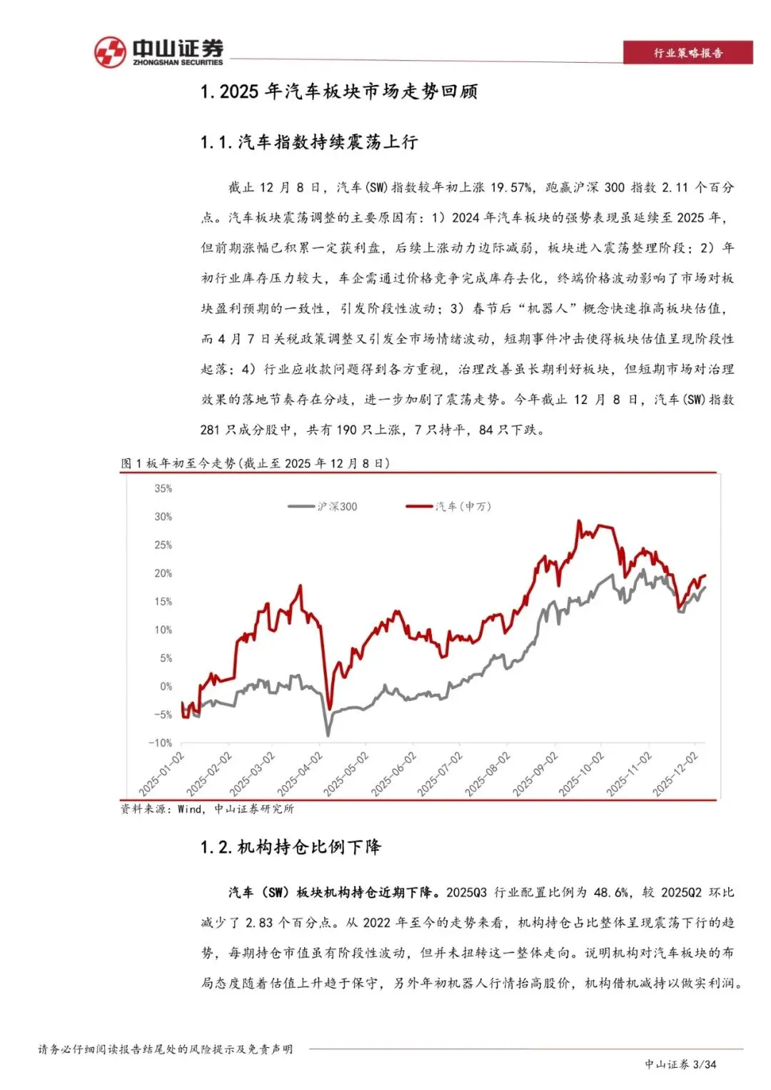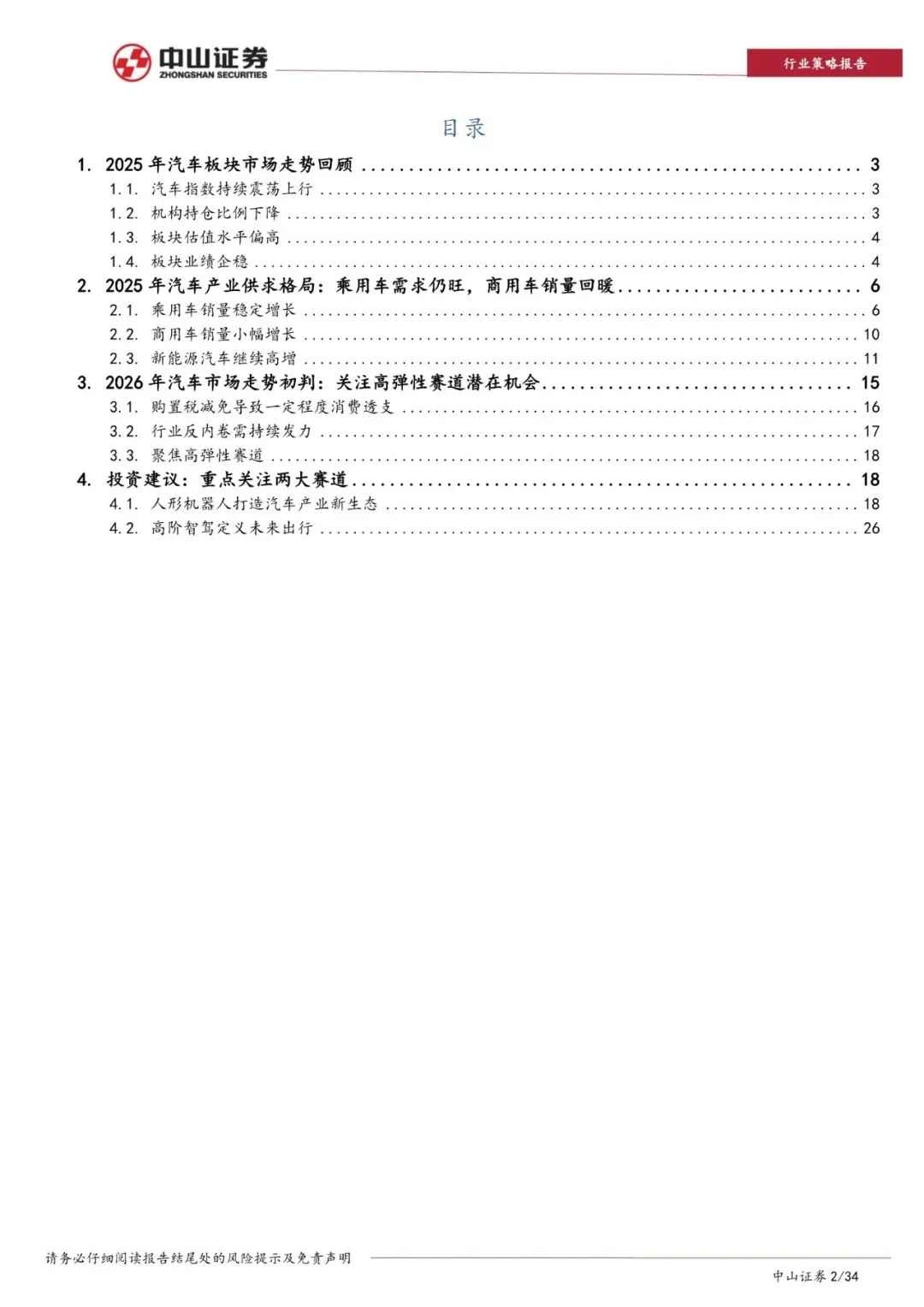 展望2026年,汽车产业面临政策退坡以及销量增速下滑等考验,可能影响行业盈利能力,因为我们认为未来一年的重点投资机会可能体现在高弹性赛道,包括人形机器人和智能驾驶。