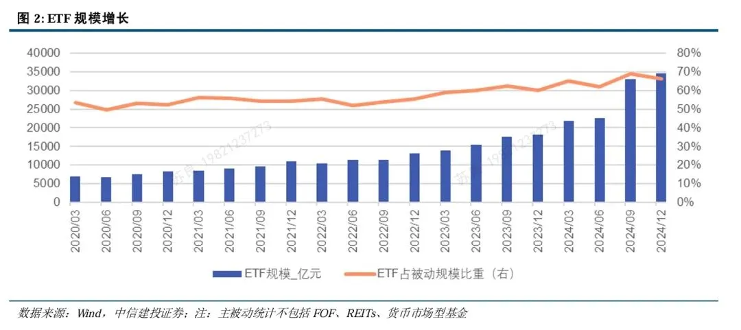在被动化投资(特别是ETF)加速发展的背景下,本文研究了主动基金的选基因子对被动产品(如ETF)的有效性。研究发现:(1)被动化趋势提速:2024年下半年以来,权益基金被动规模占比已接近一半。(2)主动基金面临压力:2024年仅不到23%的主动权益基金跑赢自身基准,跑赢沪深300的占比仅16%。在此背景下,报告构建了针对被动产品的指数基金标签矩阵。测试发现,传统的主动基金业绩评价指标(如长期风险调整后收益)在股票ETF全市场选基中并不适用。只有将范围缩小至同类型Beta产品内,这些指标才表现出一定的稳定性。若仅从业绩动量角度出发构建ETF组合,则需要更高频的换手(如两周动量) 才能取得较好效果。报告强调,ETF投资的核心仍在于大类及中观配置,而非在全市场进行个股化的“选基因子”筛选。