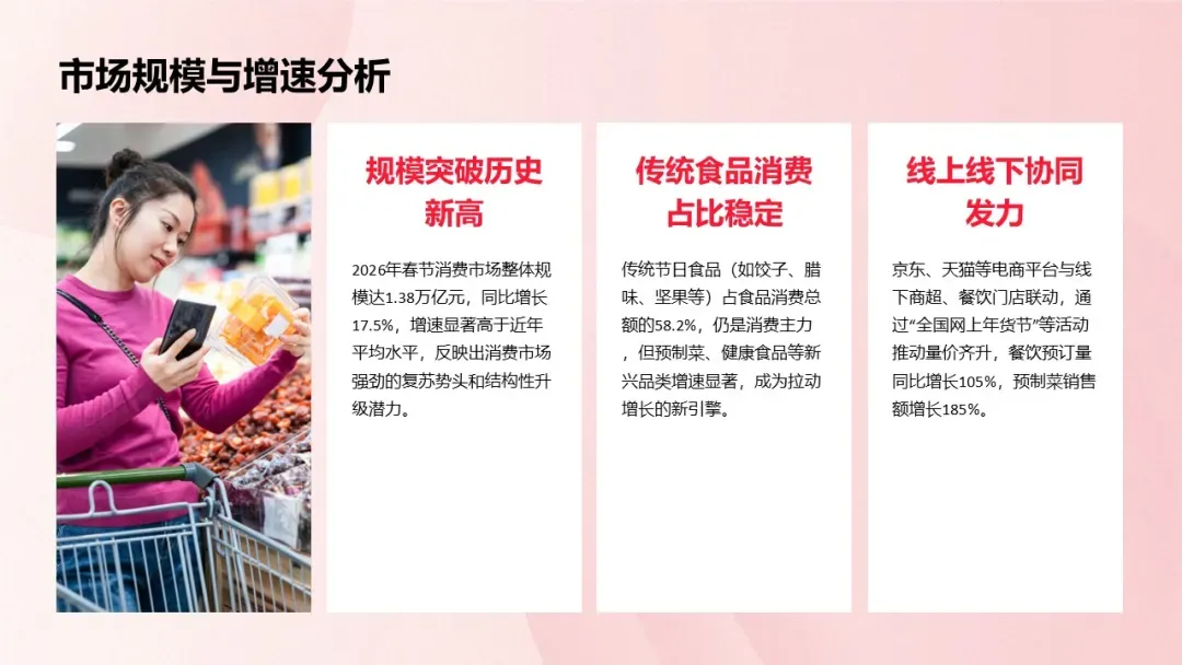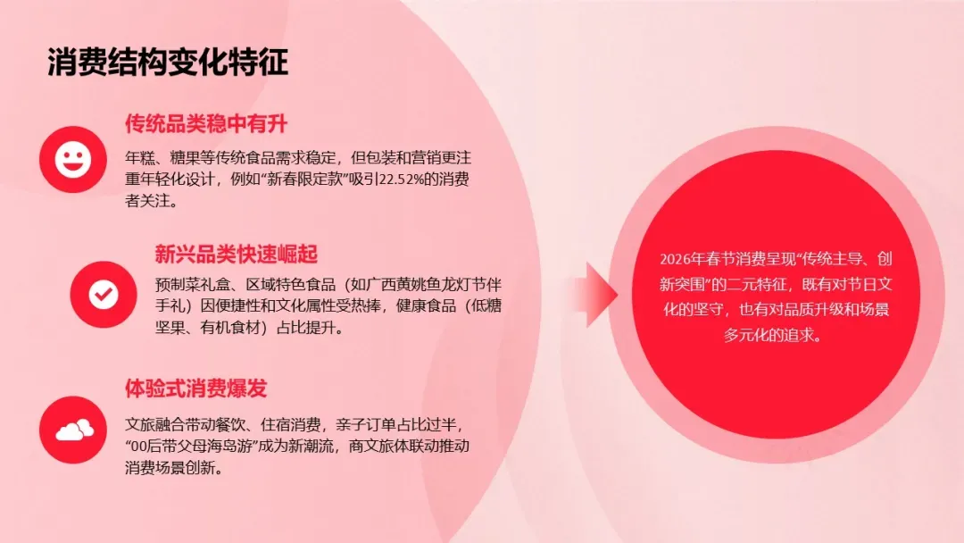 春节是中国传统节日中最重要的消费节点,食品消费作为春节消费的核心组成部分,不仅承载着团圆祈福的文化内涵,更折射出国内消费市场的升级方向与居民生活品质的提升。