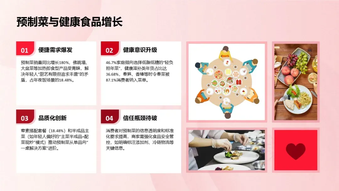 25-45岁中青年群体是家庭的核心支柱,上有老、下有小,春节食品消费呈现出“家庭化、健康化、便捷化”的特征,既要满足家庭聚餐、走亲访友的需求,又要兼顾自身的健康与便捷,是春节食品消费的核心主力。