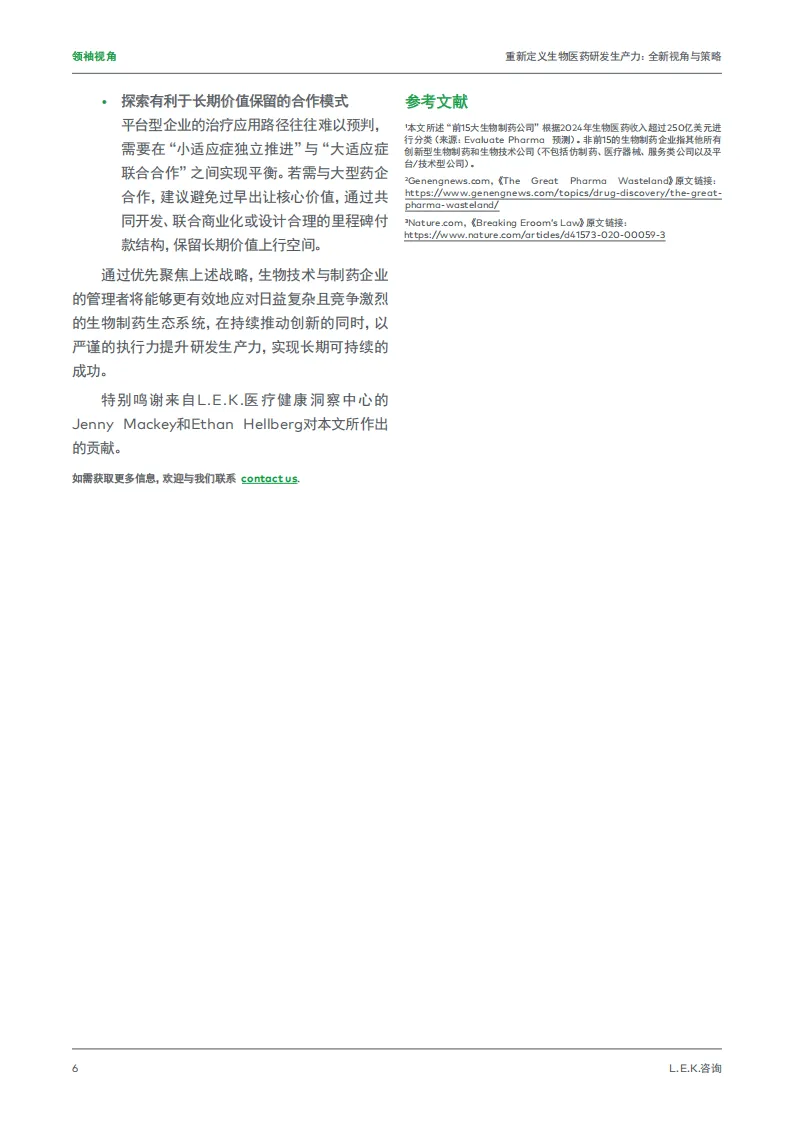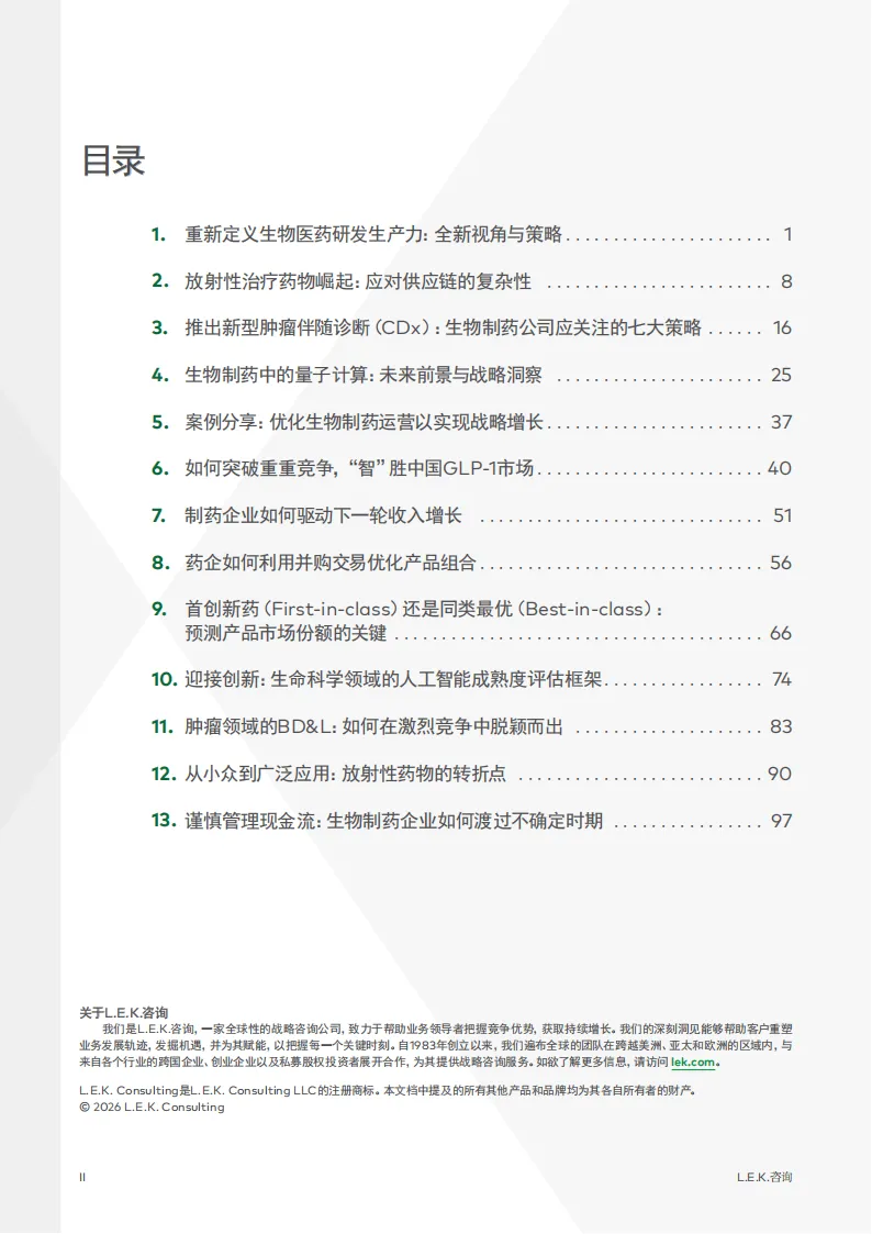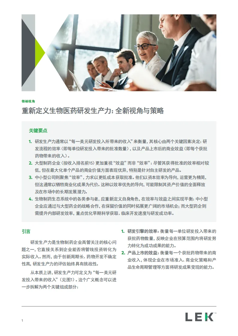 L.E.K.咨询的《生物制药企业的制胜之道》报告,聚焦行业创新、增长与核心竞争力,剖析了当前生物制药行业面临的资本约束、竞争加速及多方高期望等挑战,为企业提供了多维度战略指引。