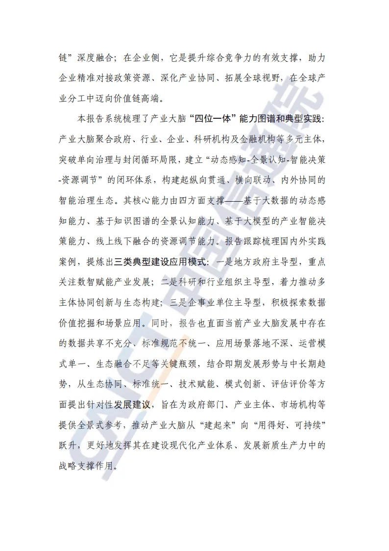 《产业大脑应用研究报告(2025年)》由中国信通院发布,系统界定了产业大脑的内涵与价值,梳理其能力体系、建设模式,并指出发展痛点与优化方向,为产业大脑体系化发展提供全景参考。