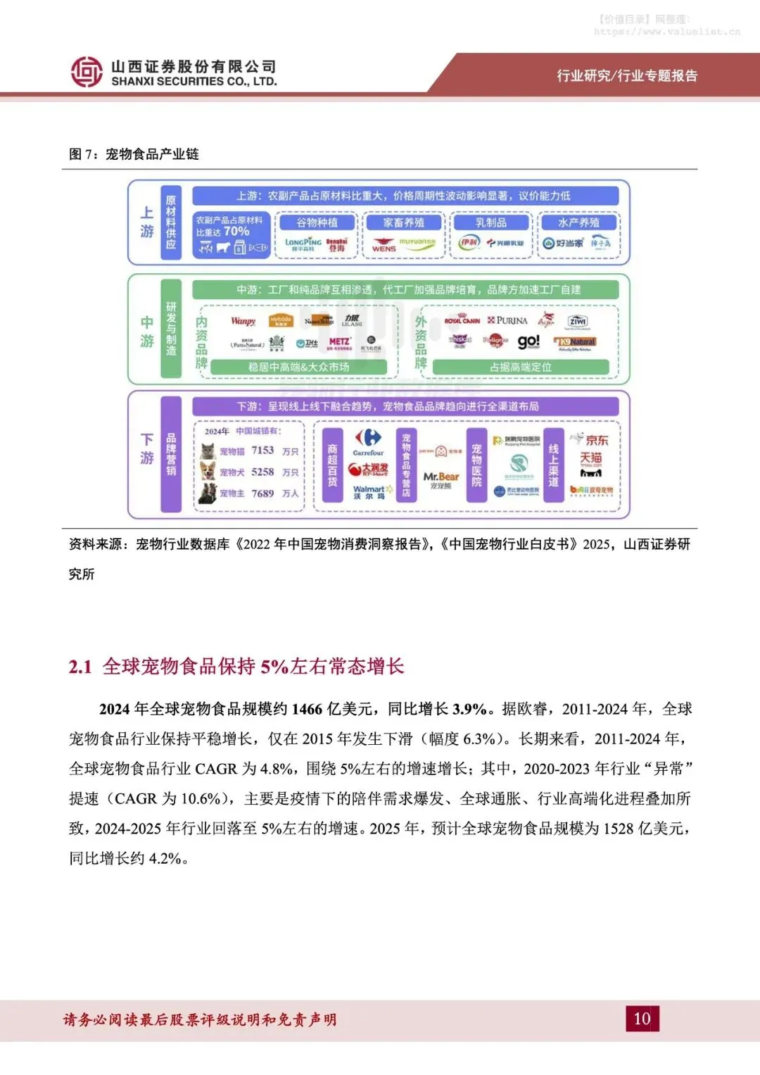 (1)需求总量:宠物行业具备增长潜力。2024年,我国城镇养宠渗透率约为21%,较日韩渗透率(日本40-60%,韩国约30%),长期仍有提升空间;短期,宠物食品销售增速(5.9%)高于社零整体增速(3.7%),是消费中景气度较高的细分行业。