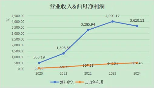 营业收入虽说在2024年有下降,但是总体的上涨趋势非常明显,尤其是2023年相对于前一年翻倍有余。虽说营业收入有起伏,但是归母净利润的持续稳定上涨暂未看到下降趋势。