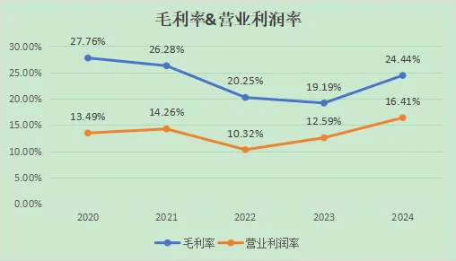 虽说近三年有一个小幅下降趋势,但是从近五年来看,上升趋势明显,近三年都能稳定在20%以上,当然,按照近三年的趋势,需要持续关注尤其是2025年还能否继续站住20%的门槛!