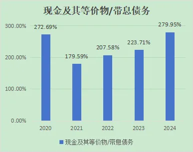 6. “现金及其等价物÷带息债务”:万一债主一起上门收回借款,公司能不能还得上,看企业的安全性,虽说一般都不会出现此种情况,就像银行一般都不会出现挤兑一样。但巴芒二老的理念之一就是,如果一件事情最坏的结果我接受不了,那么我就不会去做这件事,因为再多的涨幅,都经受不住一次归零。