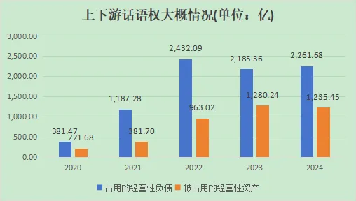 产业链强势地位明显,近四年基本都能占用产业链1000亿的无息经营业负债!
