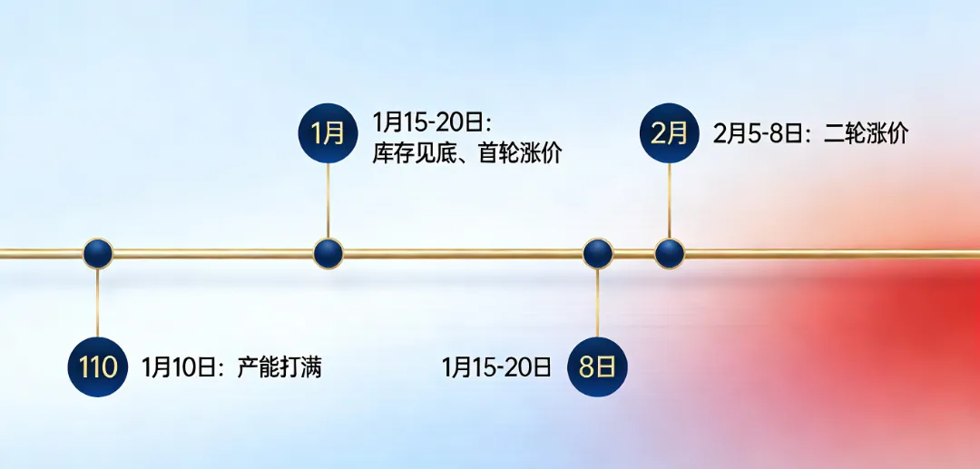 第一波(1月15日-20日):厦门钨业、中钨高新等龙头上调长单价格35%-38%;第二波(2月5日-8日):章源钨业、翔鹭钨业跟进涨价28%-32%,全部涨价信息来自上市公司官方公告。