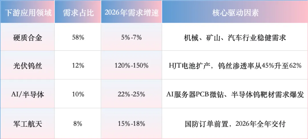 从下游需求结构看,钨的应用领域稳定增长,双轮驱动需求爆发: