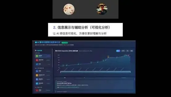 让AI将投资信息可视化,并实现可交互的分析效果,提升分析的直观性与效率。例如,可让AI梳理2023年至2026年的重大AI事件,筛选AI产业链上下游的热门股票,开发可交互的网页,绘制股票价格走势图表,在图表中标注重大AI事件,并分析事件对股票价格的影响。