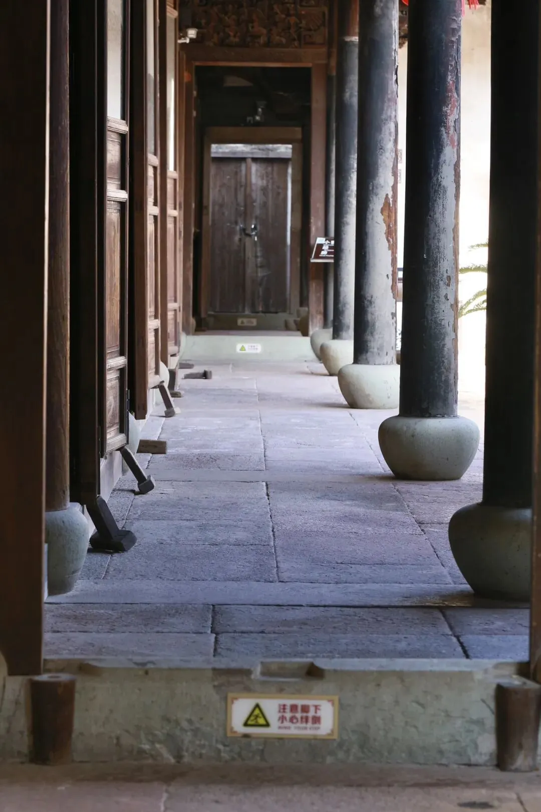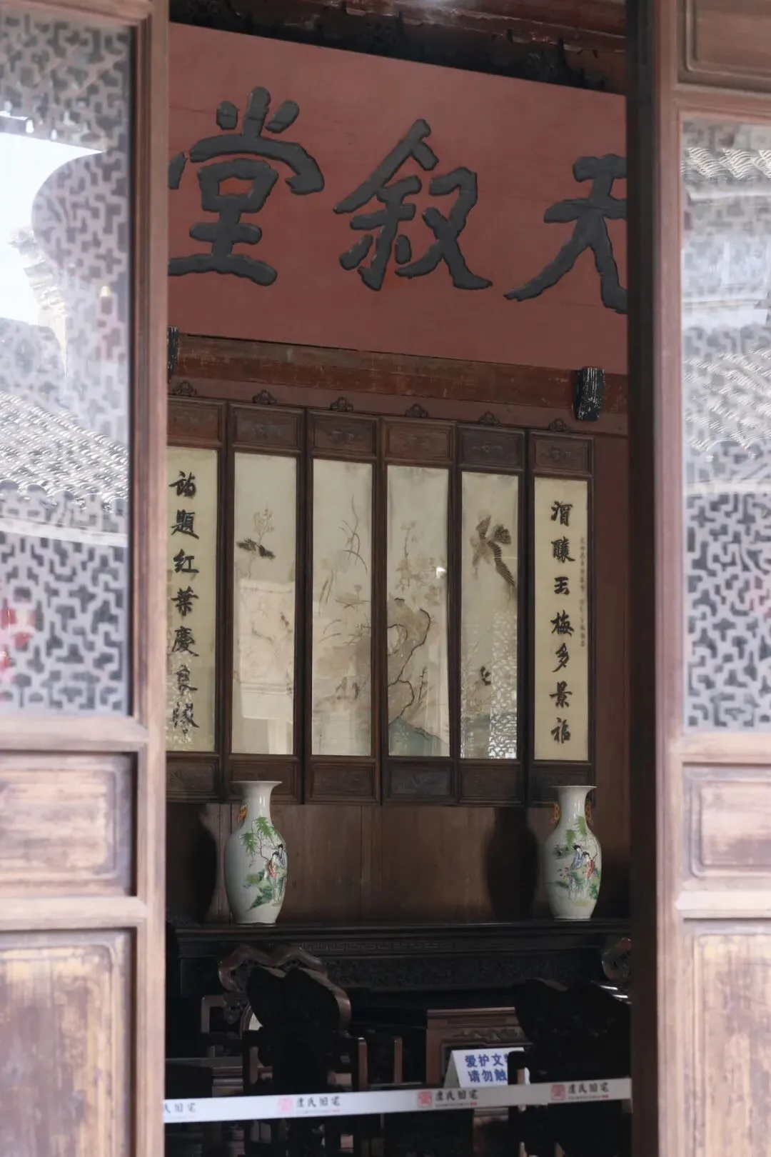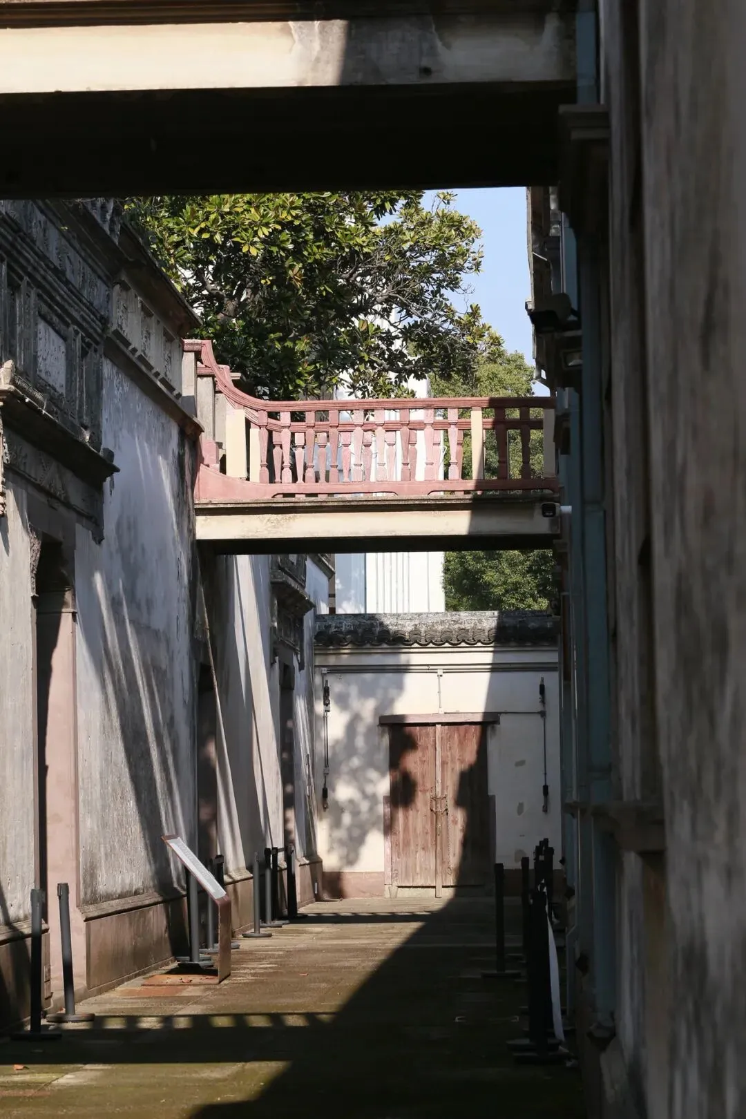 虞氏旧宅(天叙堂)位于慈溪龙山,1916-1929年建成,系全国重点文保单位。建筑五进院落,前三进为传统江南木构,后两进融罗马柱、科林斯柱式等西式元素,砖雕与铁艺并存,完美体现中西合璧的建筑艺术。