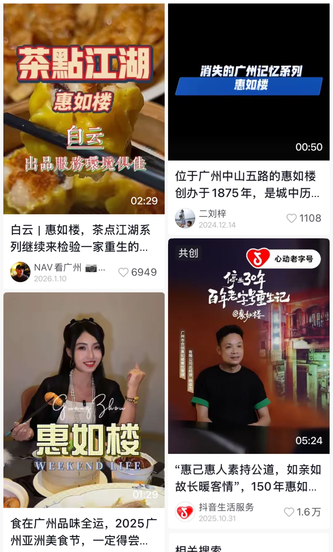 广州的老字号品牌一方面坚守着岭南饮食文化的独特风味,另一方面主动拥抱抖音的本地生活运营工具,将线上流量高效转化为线下客流。通过积极拥抱新工具,新平台,不断与时俱进,广州老字号成功触达了更多年轻消费群体,实现了口碑与业绩的双丰收,成为老字号数字化转型的标杆地区之一。