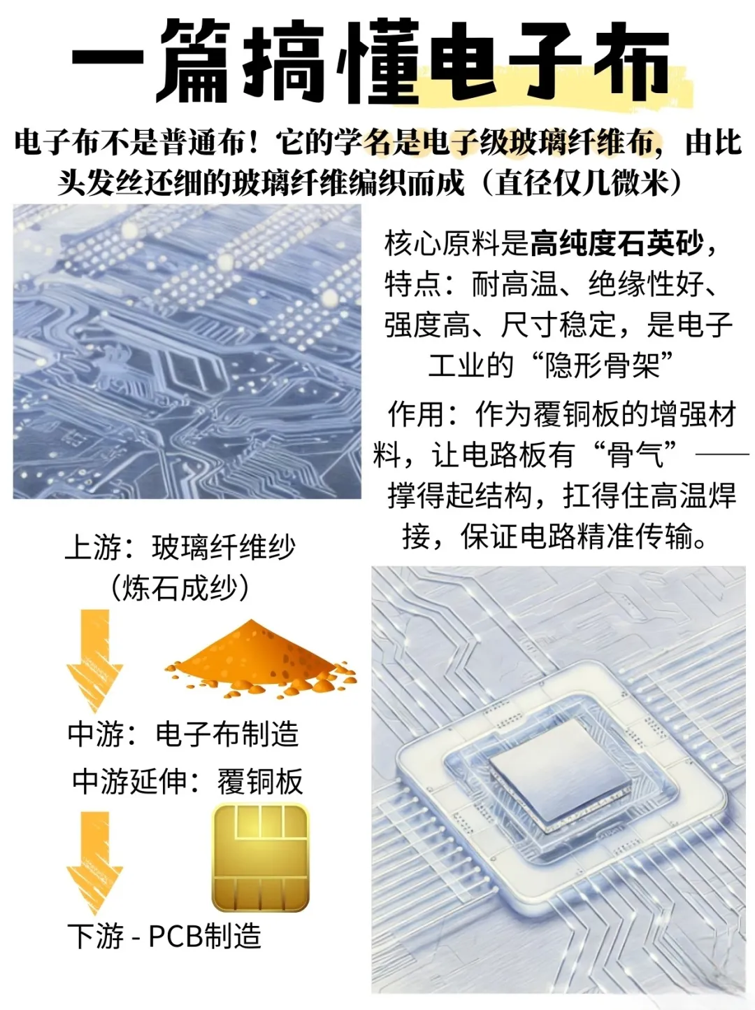 - 上游:电子纱、玻纤及石英砂
