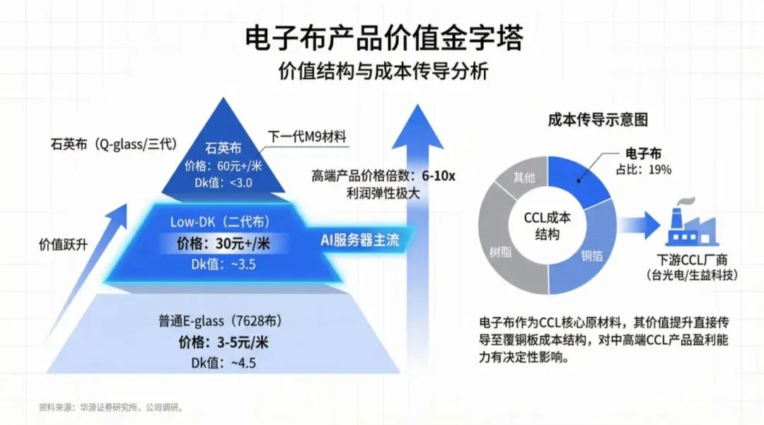 - 高端Low-CTE电子布单价80-240元/米,是普通产品的20-50倍,毛利率显著高于传统业务;