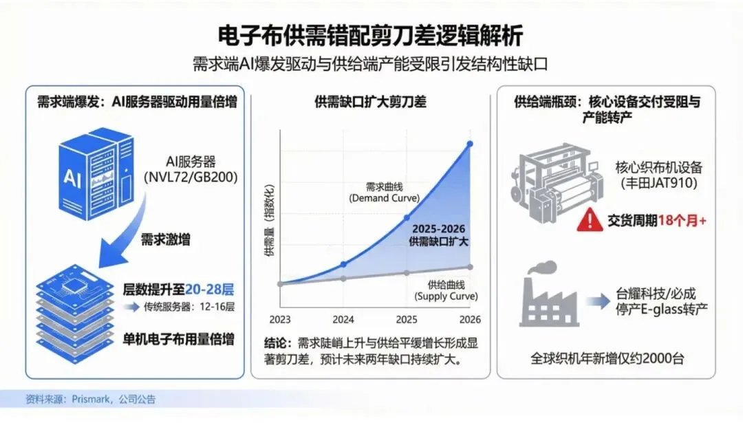 价格上行核心逻辑:AI需求刚性+高端产能短缺+织布机瓶颈+库存低位。普通产品涨价带来业绩弹性,高端产品放量带来利润率提升,行业迎来“量价齐升+结构优化”双击。