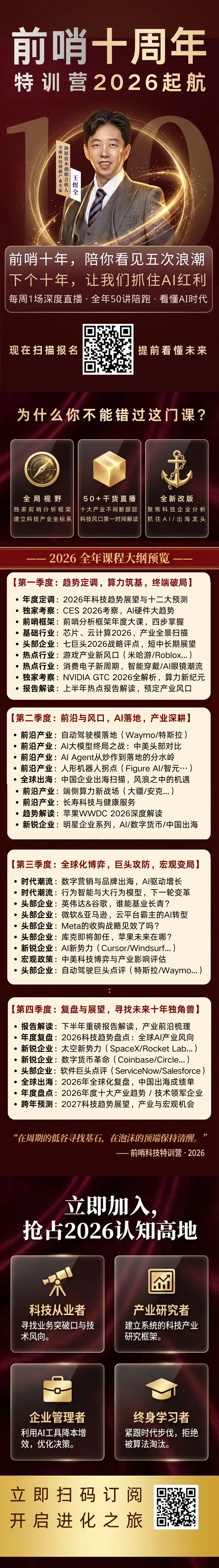 特别提示:前哨科技特训营帮助会员掌握产业分析方法、洞察产业机会,不提供荐股、估值等服务,投资有风险、入市需谨慎。