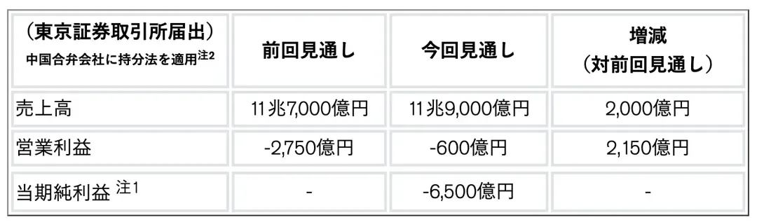 这将是日产公司连续第二年出现巨额亏损。2024财年,日产净亏损为6709亿日元。日产汽车表示,由于其全球销量下滑、大幅裁员产生巨额费用,以及美国关税政策带来的冲击,公司利润受到严重挤压。受美国和中国市场增长及成本削减推动,日产将2025财年(2025年4月至2026年3月)净亏损预期从原估下调至6500亿日元,并上调中国销量预期至65.3万辆。