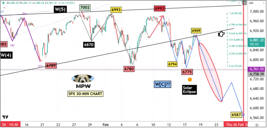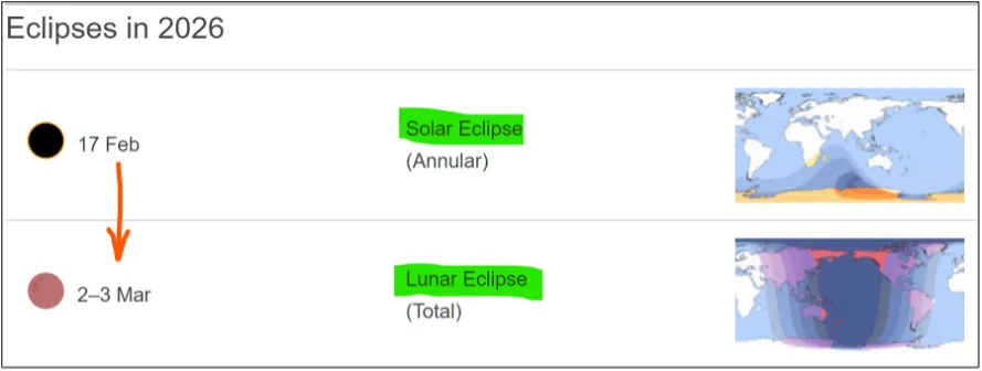 好了,以下是今年的情况 —— 2月17日发生日食,当时市场创下短期低点并反转走高。两周后,月食(满月)将于3月2日降临 —— 这也是3月的第一个星期一。