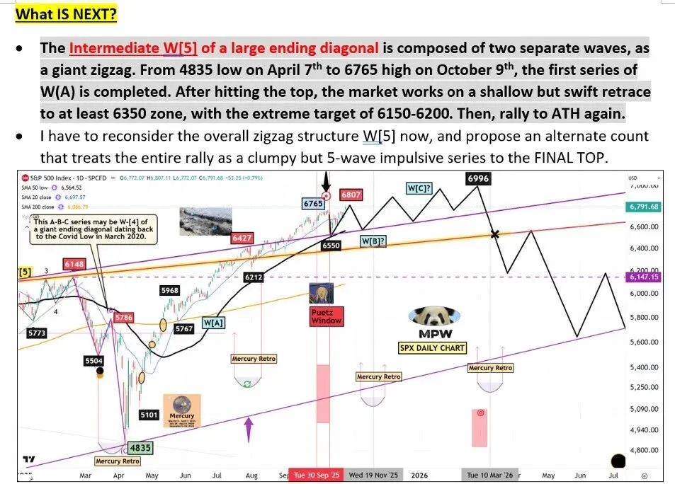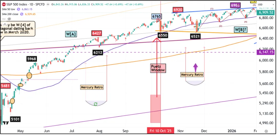 关键在于:四个月前,当标普500指数(SPX)达到 6900 区域时,并未预告会有任何重大衰退或下跌,更不用说崩盘了。