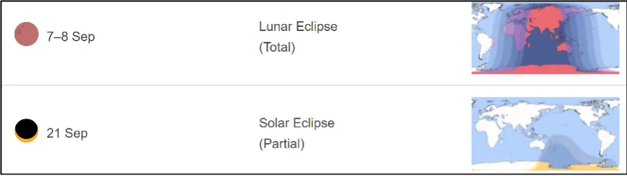 你们中有些人可能会好奇上一次设置期间发生了什么 —— 在2025年底,日食发生在9月21日。由于月食发生在日食之前,因此我们将注意力转移到日食之后的满月,即10月7日。