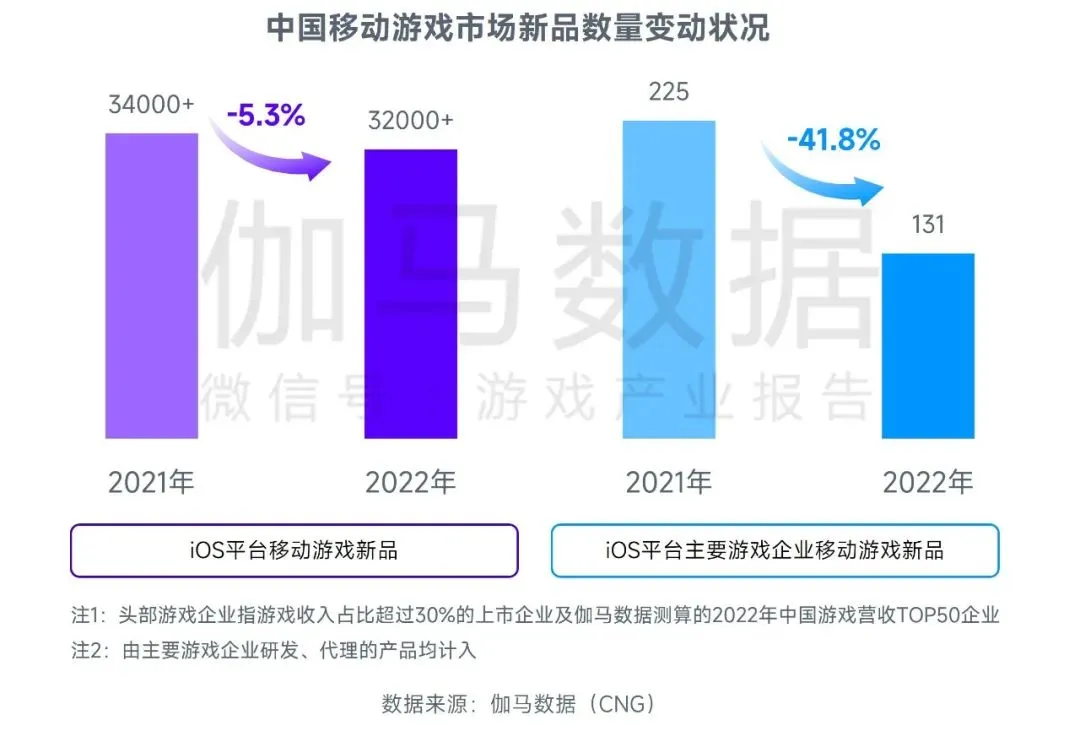 2022年头部游戏企业新品产出数量减少41.8%