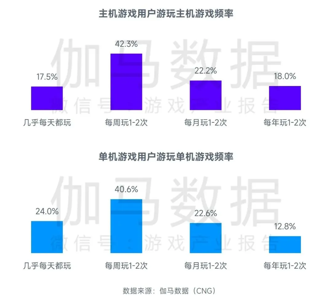 主机/单机游戏:6成左右用户每周或更频繁的游玩