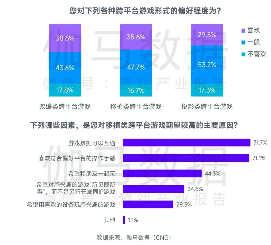 跨平台:移植类跨平台游戏受35.6%的用户喜欢,且不喜欢的用户占比最低