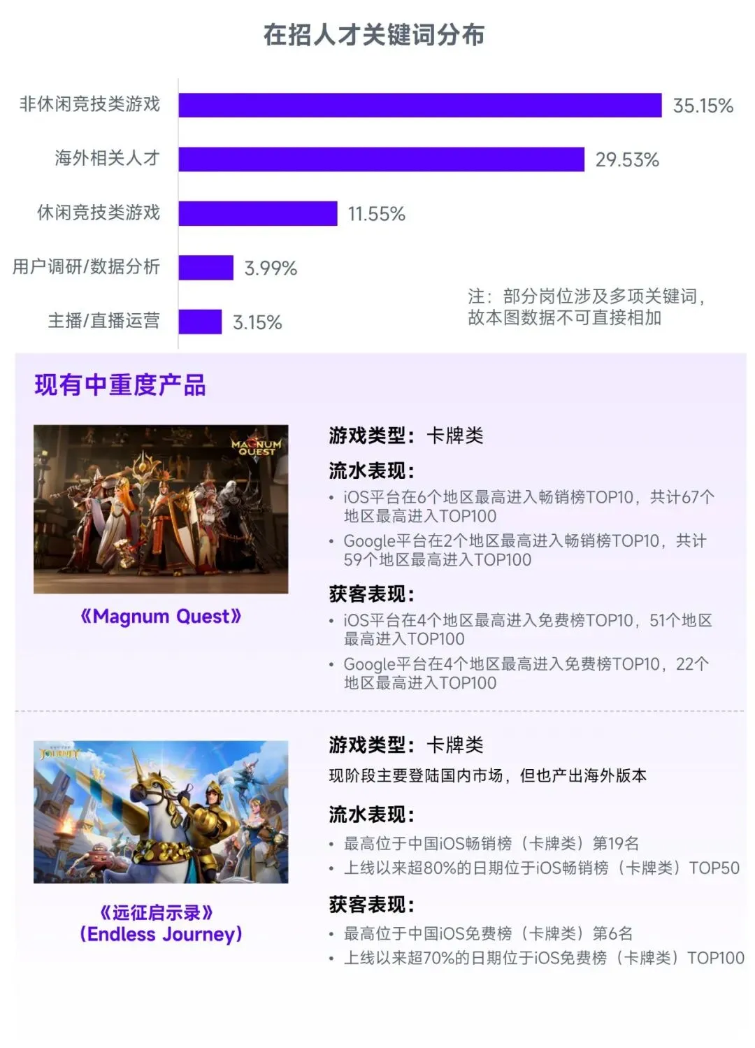 细分领域方面,未来途游游戏有望在卡牌品类中继续拓展新的优势,并强化海外市场的探索。在中重度游戏层面,途游已推出两款全球性卡牌产品,均取得了一定的成绩,而相关研发经验也有望在更多产品中得到应用。在布局细分领域上,途游也有多项优势可持续发挥作用,一方面在于其持续积累的全域经营经验,有望进一步强化产品的市场化成果,全域经营在流量竞争日益加剧的全球市场将显得更为关键。另一方面,企业持续加码上述品类的人才储备,扩充全球性人才资源,进而有望为不同类型产品的全球化研发与运营奠定基础。