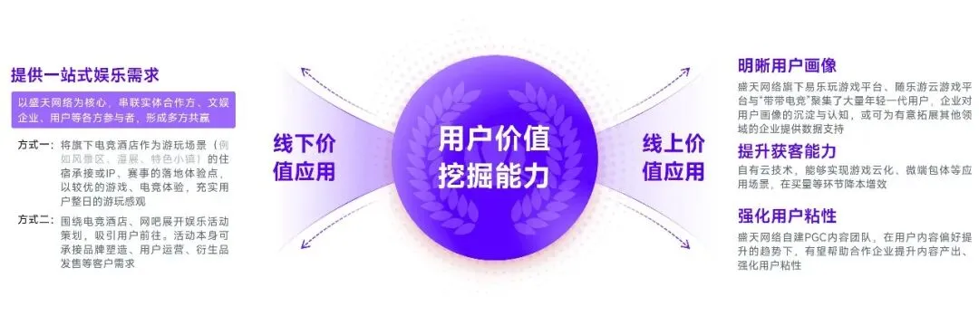 盛天网络的用户价值挖掘能力值得产业重点关注,尤其在发展多元化变现及商业模式成为长期趋势的情况下,用户价值挖掘能力或将成为盛天网络的重要潜力点之一。盛天网络在挖掘用户价值领域的竞争优势主要在于:第一,盛天网络的资源较为丰富立体,且资源串联能力较强;第二,盛天网络在业内主要承担服务商的角色,这意味着企业拥有更强的意愿、更多的经验为合作伙伴提供所需服务;第三,从近年的布局来看,盛天网络持续加码自有资源在用户层面的变现能力,并衍生出更多挖掘用户价值的潜在场景,例如布局的电竞酒店业务,其本身即为可同步释放线上线下价值的场景,在此基础之上还拥有与游戏展会、衍生品、赛事等领域结合的空间。