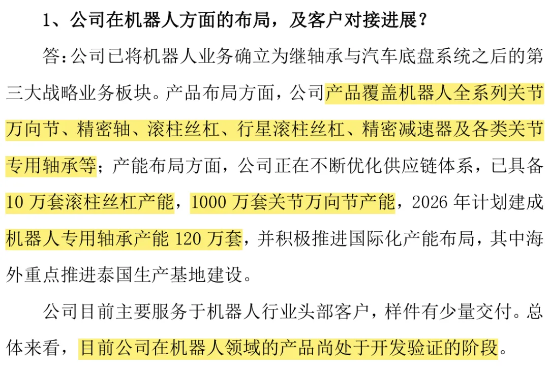 获得的新用户新项目有奔驰、吉利沃尔沃、上汽通用等轮毂单元轴承项目;一汽红旗、本田、比亚迪、长城等驱动轴总成项目;广汽、长城汽车、比亚迪等轴承项目等。