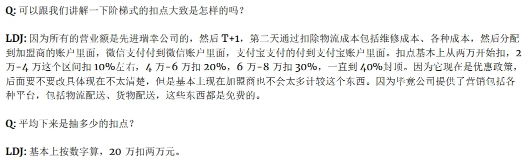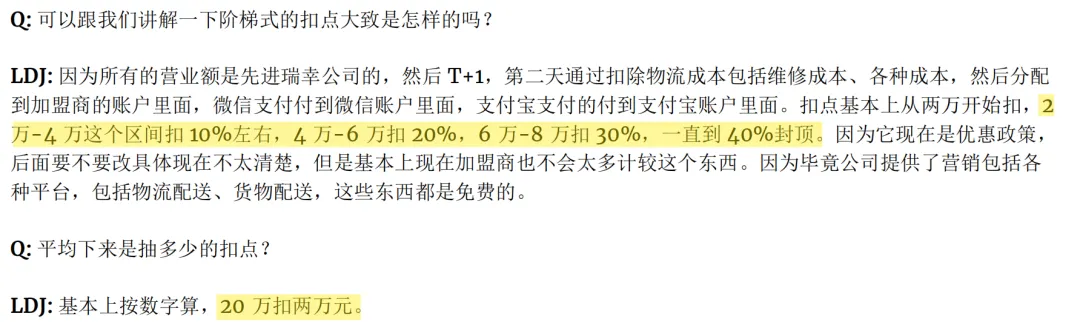 根据政策与加盟商实际情况的差别来看,瑞幸现在还给了加盟商不少优惠,未来会逐步提升(最近已经有加盟商反馈提抽成了)
