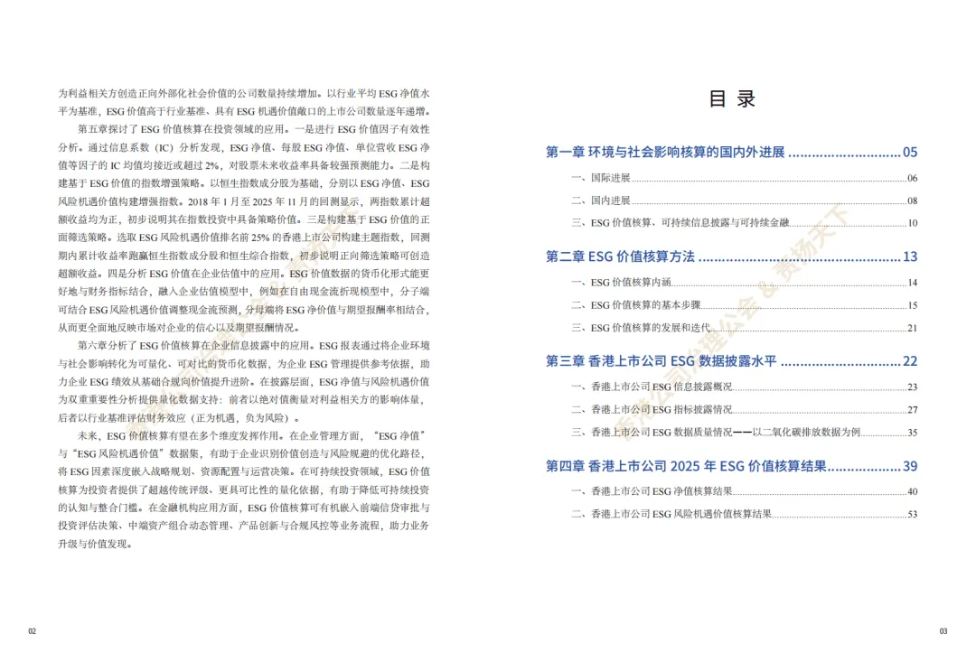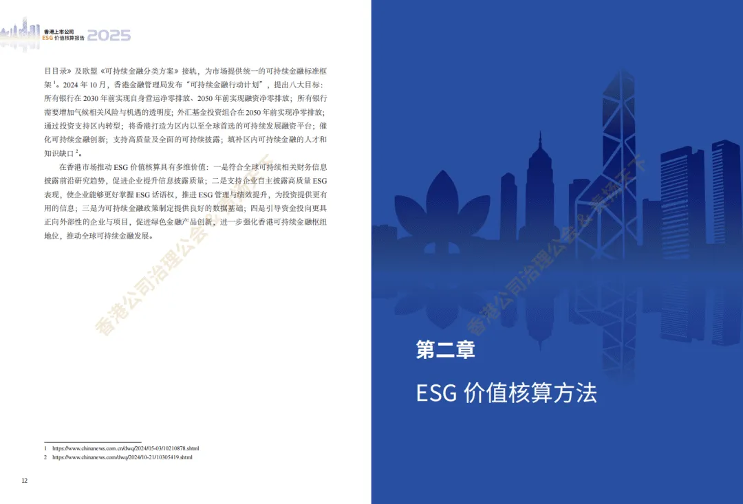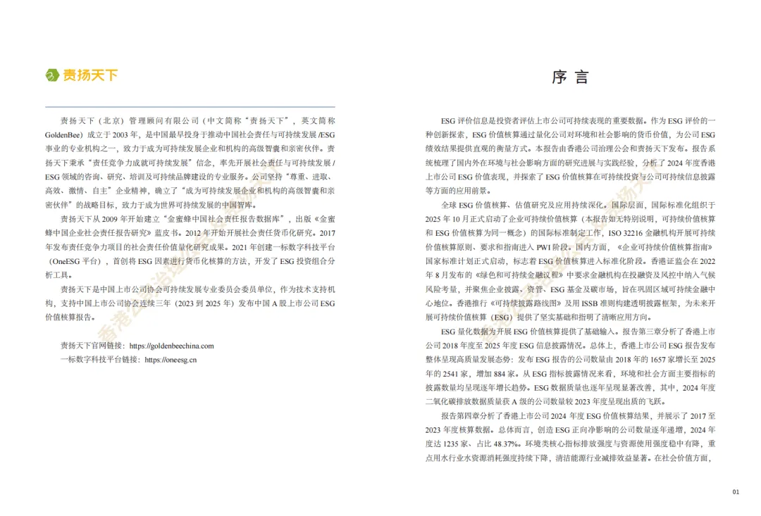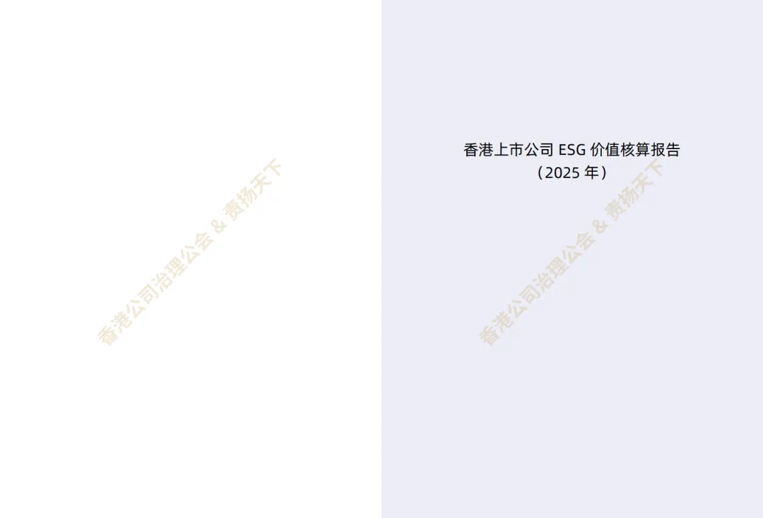 《香港上市公司ESG价值核算报告(2025)》由香港公司治理公会与责扬天下联合发布,系统梳理了ESG价值核算的国内外进展,分析了香港上市公司ESG数据披露与价值核算表现,并探索了该核算体系在投资、企业管理等领域的应用及未来趋势。