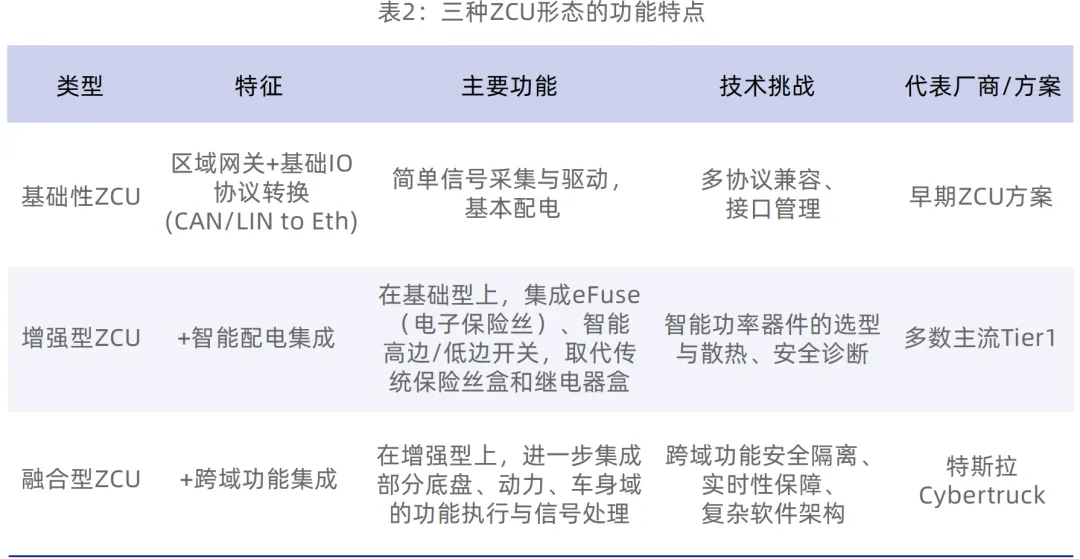 按产品形态与集成度划分 ZCU 的发展体现了集成度不断提高的过程,其形态大致可以分为三类:基础性 ZCU、增强型 ZCU 和融合性 ZCU,如下表所示: