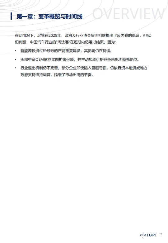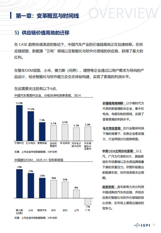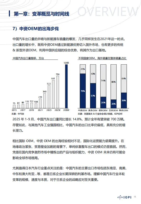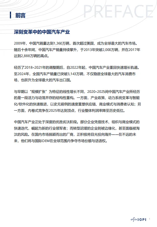 中国汽车产业正处于深度的优胜劣汰阶段。部分企业凭借技术、组织与商业模式的快速迭代,崛起为新的行业领军者;而转型迟缓的企业则被边缘化,甚至面临被淘汰的风险。在国内市场脱颖而出的厂商,正积极将目光投向海外——在不远的未来,他们将与国际OEM在全球范围内争夺市场份额与话语权。