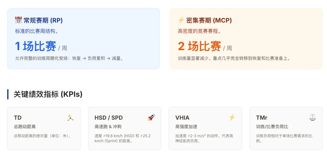 密集赛期 (Match Congested Period, MCP):包含频繁的一周双赛。