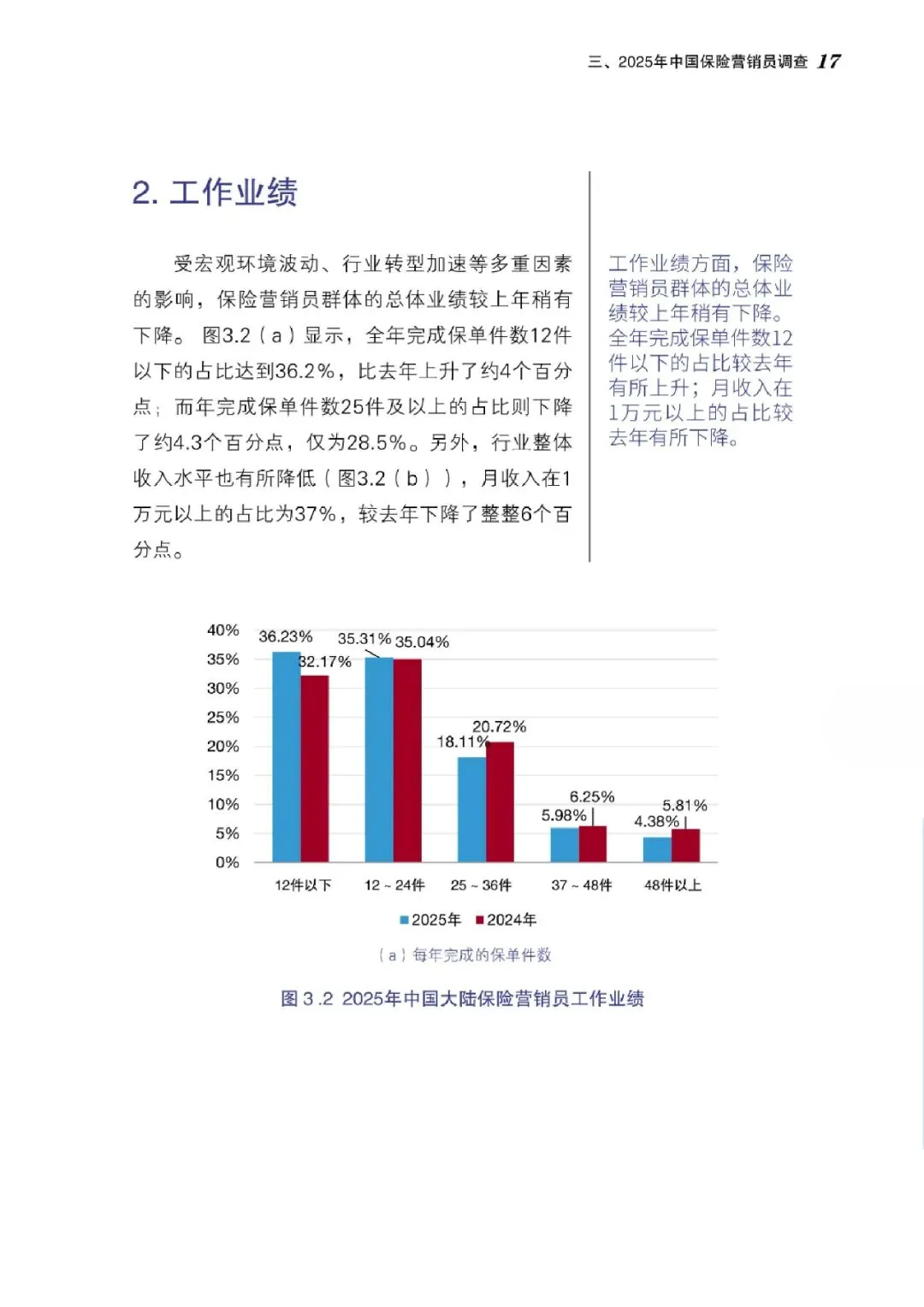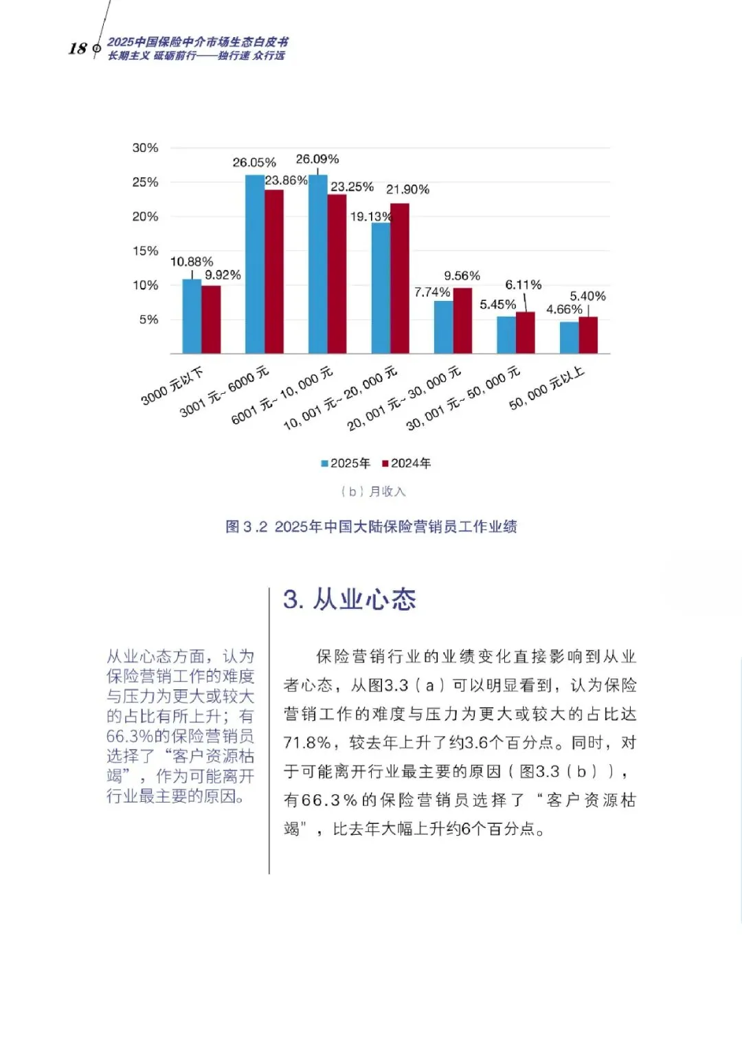 调查显示,2025年保险营销员总量降至264万人,较2019年峰值缩水超七成,但降幅收窄,队伍呈现“清虚提质”后的企稳态势。保险深度与保险密度实现双升,分别达4.2%和4046元,反映行业高质量转型成效。