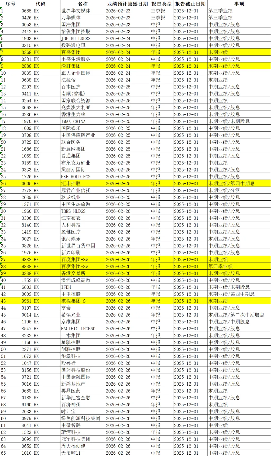 A股港股方面,百胜集团、渣打银行、携程等公司发布财报。