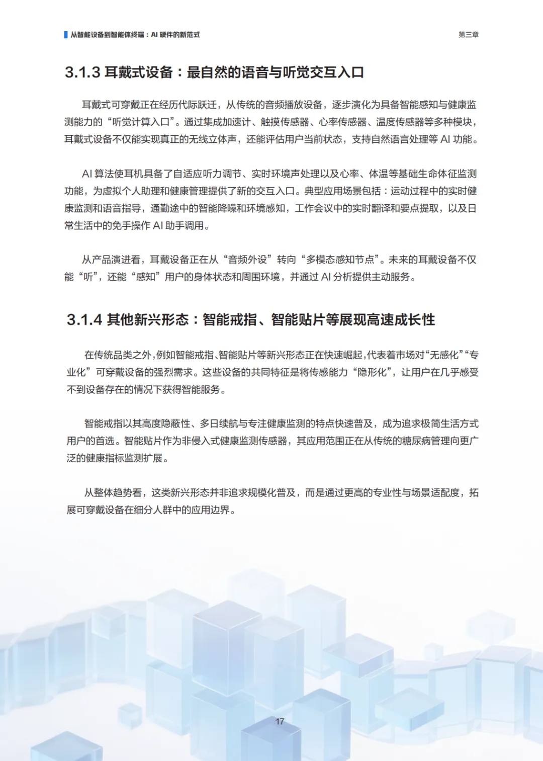 为深入研究上述问题,阿里云研究院基于 1000 名消费者调研结果,结合主流产品系统分析与行业深度交流,形成本报告。报告从定义边界、用户需求、应用场景与技术演进四个维度,系统梳理 AI 消费硬件从“智能设备”迈向“智能体终端”的演进路径。我们认为,AI 消费硬件的长期价值不在于单点技术领先,而在于能否在成本、体验、隐私与系统复杂度之间建立可持续平衡,并在真实场景中稳定兑现用户可感知的价值。