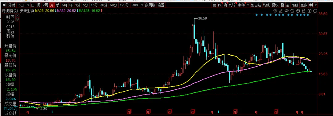 手握国内最多的采血站、最大采浆量,采浆量占全国两成,是中国血制品行业绝对龙头,浆站资源、采浆规模、产品线完整性均稳居行业第一。拉长K线看,血王长期保持向上趋势,中途虽有多年横盘震荡,但2019年疫情催化下,血浆需求激增、供不应求,股价一度走出4倍涨幅的强势行情。但如今行情急转直下:最新收盘价16.30元,股价已跌破128月均线,且无明显企稳迹象,震荡下行趋势明确。股价下跌的答案,就藏在财报里,一目了然。