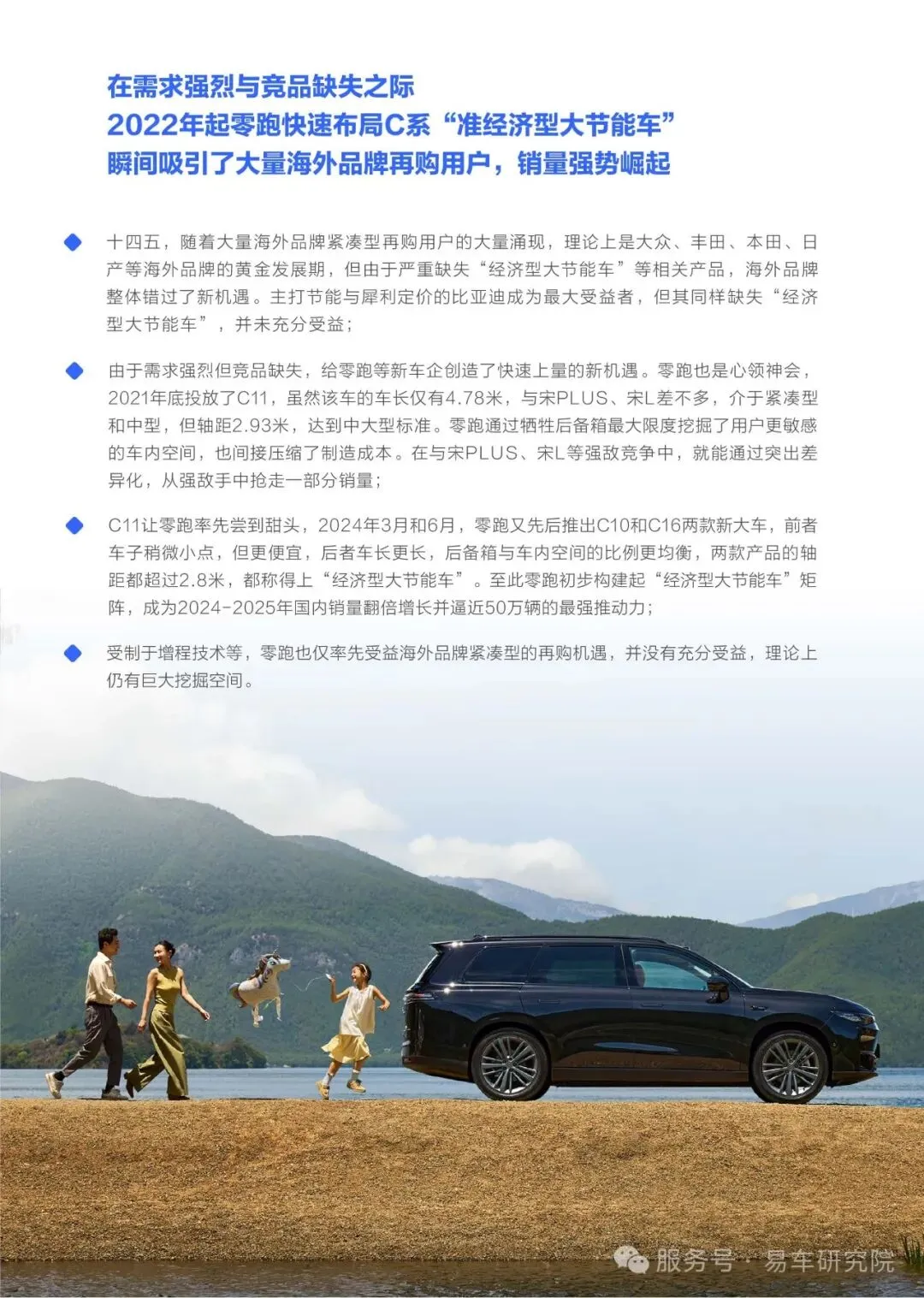 市场竞争格局为零跑创造了窗口期。海外品牌在"十四五"期间新能源转型缓慢,缺失适合的节能车型;比亚迪虽受益于该趋势,但产品布局仍存在空白。零跑凭借C11、C10、C16等车型快速抢占市场空白,2025年实现销量逼近50万辆的突破。