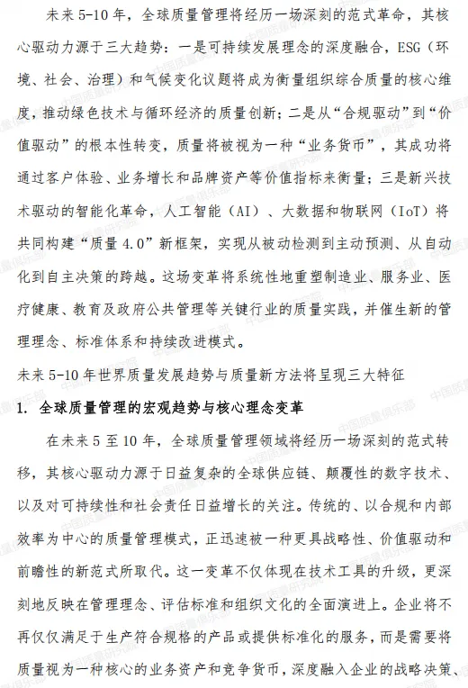 未来 5-10 年,全球质量管理将经历一场深刻的范式革命,其核心驱动力源于三大趋势:
