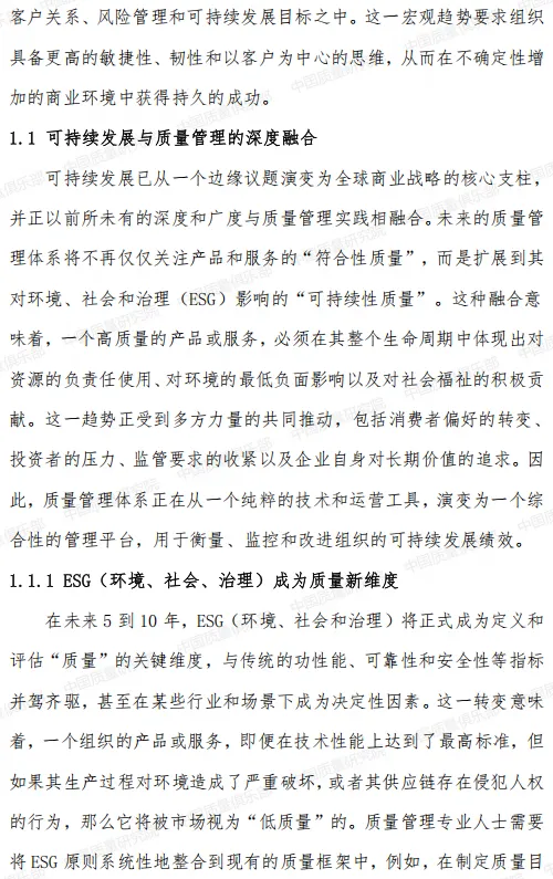 1.1.1 ESG(环境、社会、治理)成为质量新维度