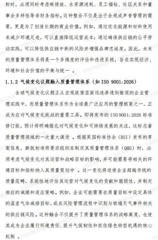 1.1.2 气候变化议题融入质量管理体系(如 ISO 9001:2026)