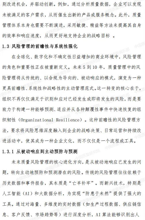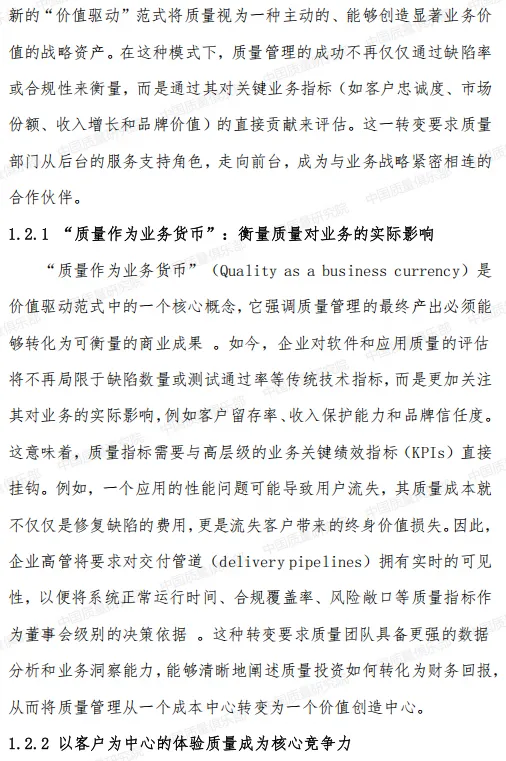 二是从“合规驱动”到“价值驱动”的根本性转变,质量将被视为一种“业务货币”,其成功将通过客户体验、业务增长和品牌资产等价值指标来衡量;