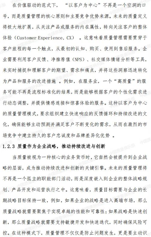 一是可持续发展理念的深度融合,ESG(环境、社会、治理)和气候变化议题将成为衡量组织综合质量的核心维度,推动绿色技术与循环经济的质量创新;