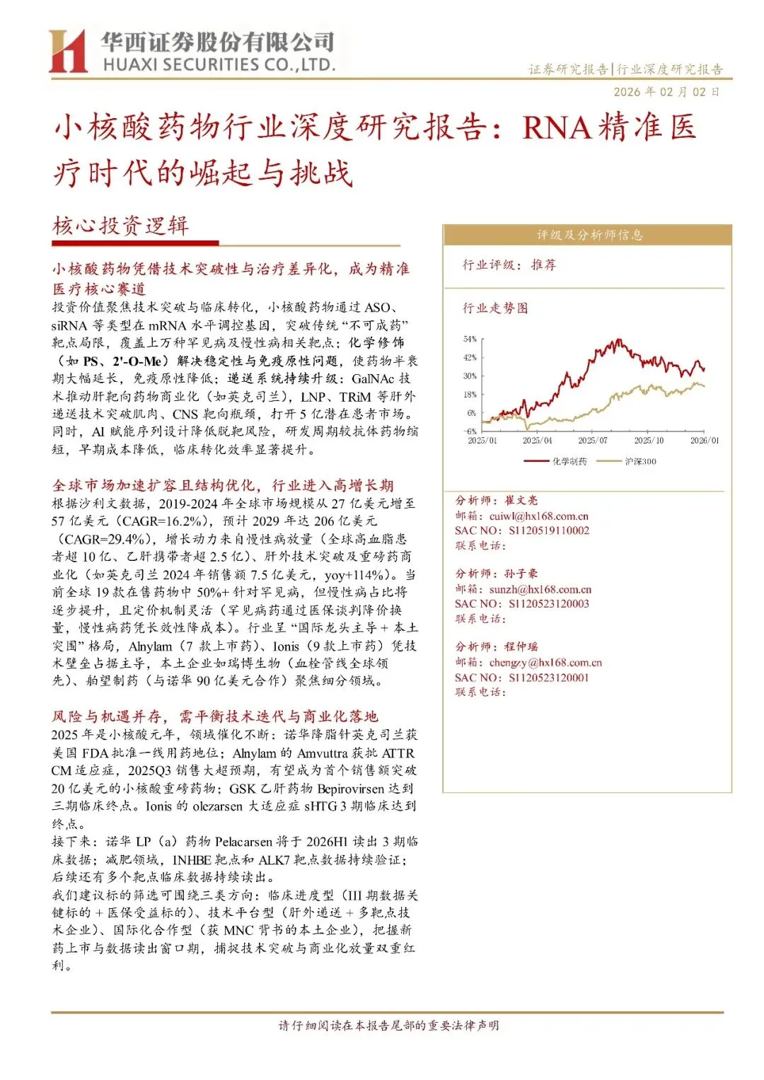 回复暗号:小核酸药物行业深度研究报告:RNA精准医疗时代的崛起与挑战-260202-华西证券-23页