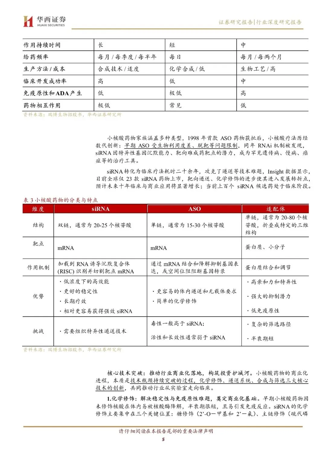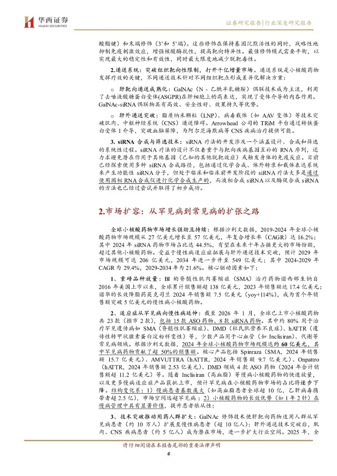 投资价值聚焦技术突破与临床转化,小核酸药物通过 ASO、siRNA 等类型在 mRNA 水平调控基因,突破传统 “不可成药” 靶点局限,覆盖上万种罕见病及慢性病相关靶点;化学修饰(如 PS、2'-O-Me)解决稳定性与免疫原性问题,使药物半衰期大幅延长,免疫原性降低;递送系统持续升级:GalNAc 技术推动肝靶向药物商业化(如英克司兰),LNP、TRiM 等肝外递送技术突破肌肉、CNS 靶向瓶颈,打开 5 亿潜在患者市场。同时,AI 赋能序列设计降低脱靶风险,研发周期较抗体药物缩短,早期成本降低,临床转化效率显著提升。