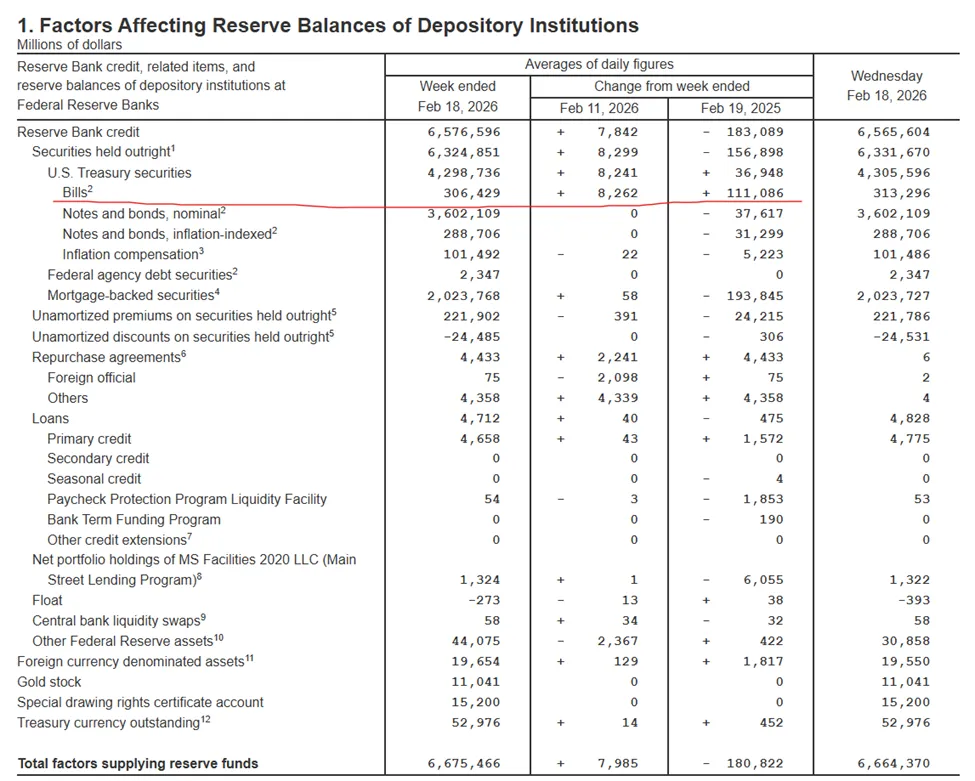 Fed在2025年12月终止QT并启动储备管理购买计划(RMP),每月在二级市场购入约400亿美元短期国债(以T-bills为主,必要时涵盖3年以内其他国债),精准填补了ON RRP耗竭后的流动性缺口。联邦基金利率稳定锚定在目标区间3.50-3.75%内,短端秩序井然。