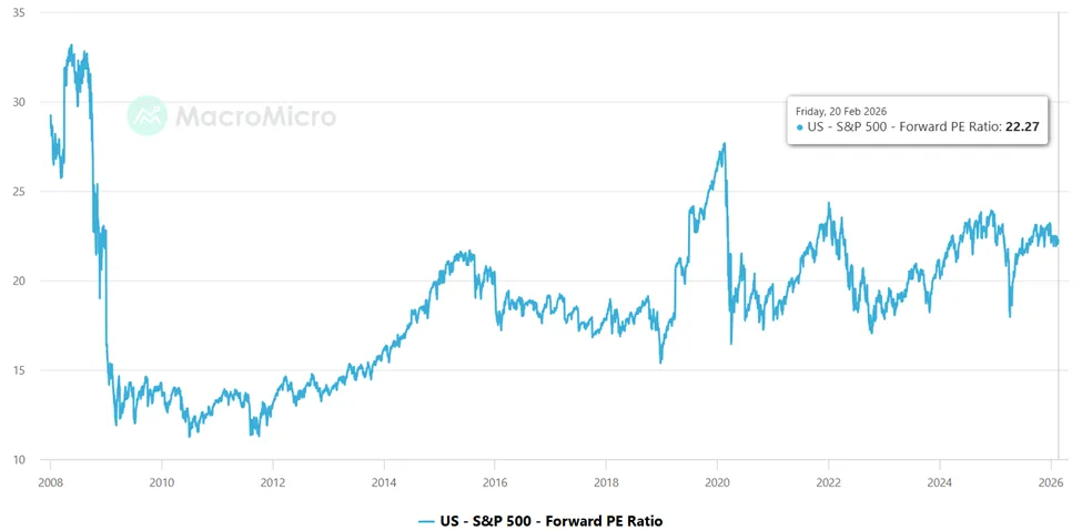 在10年期美债收益率坚守4.02%的环境下(1/4.02% = 24.9的PE水平),市场隐含的股权风险溢价已被压缩至显著低于历史均值的水平。当前股价对2026年14.4%盈利增长的预支程度很高,留给意外的余地极小。